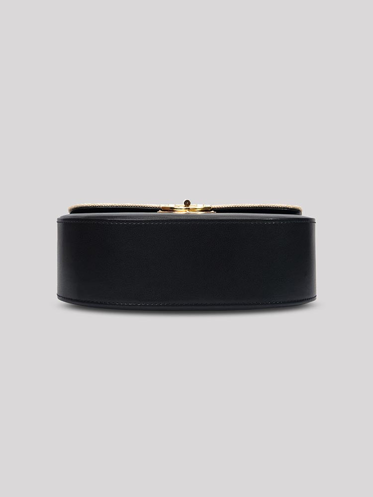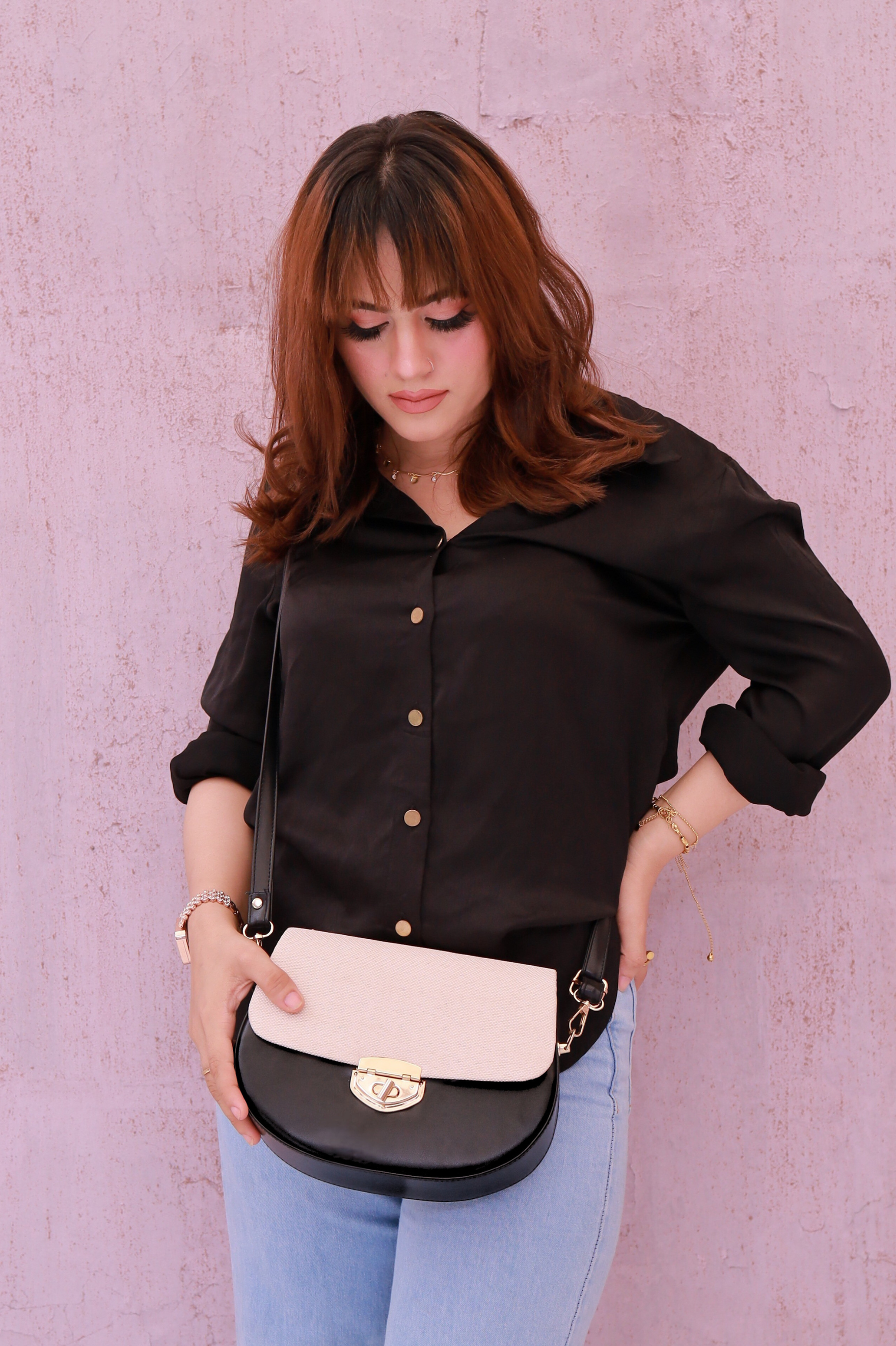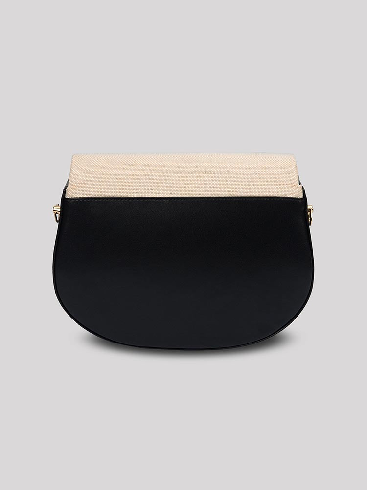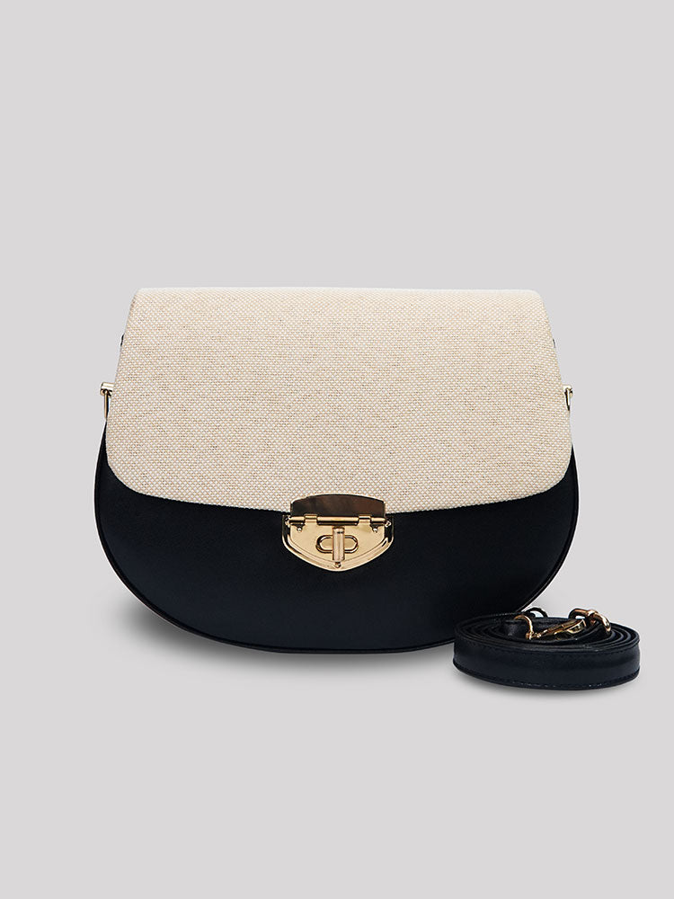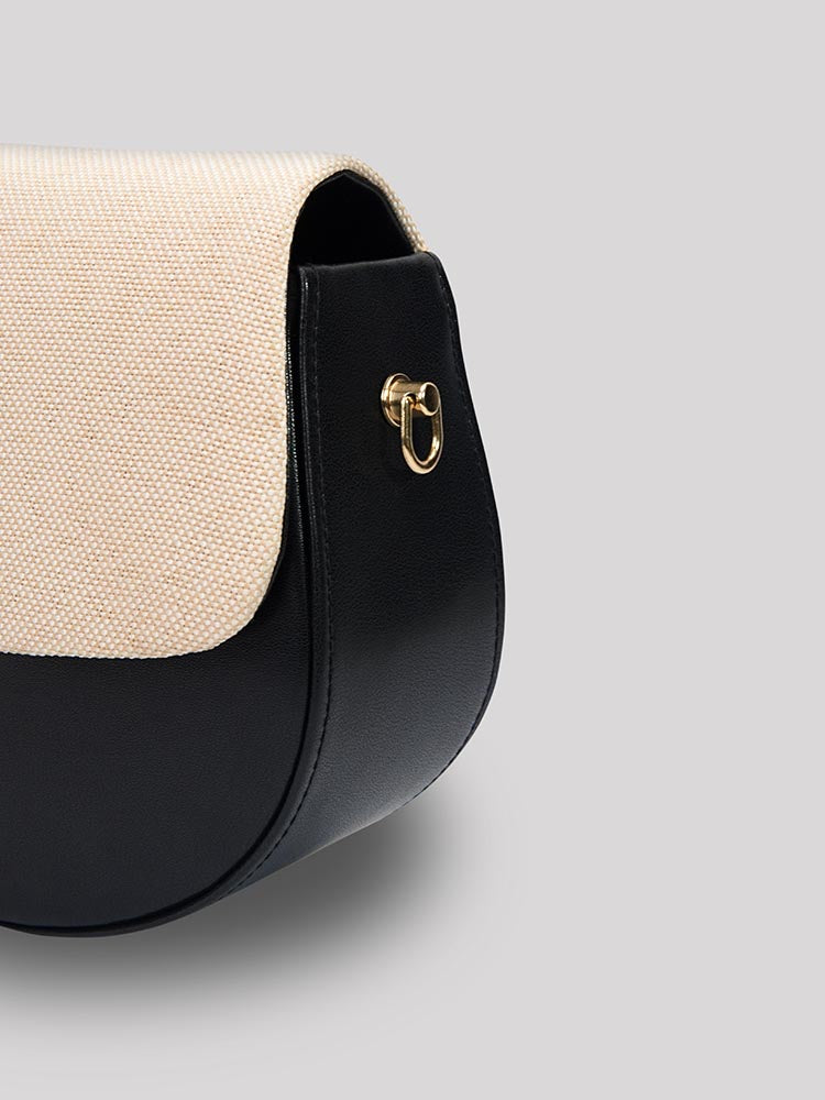 This exquisite ZOE bag combines classic saddle shape with contemporary two-tone styling, making it a versatile accessory for various occasions. Its structured silhouette and quality hardware suggest a blend of durability and elegance.