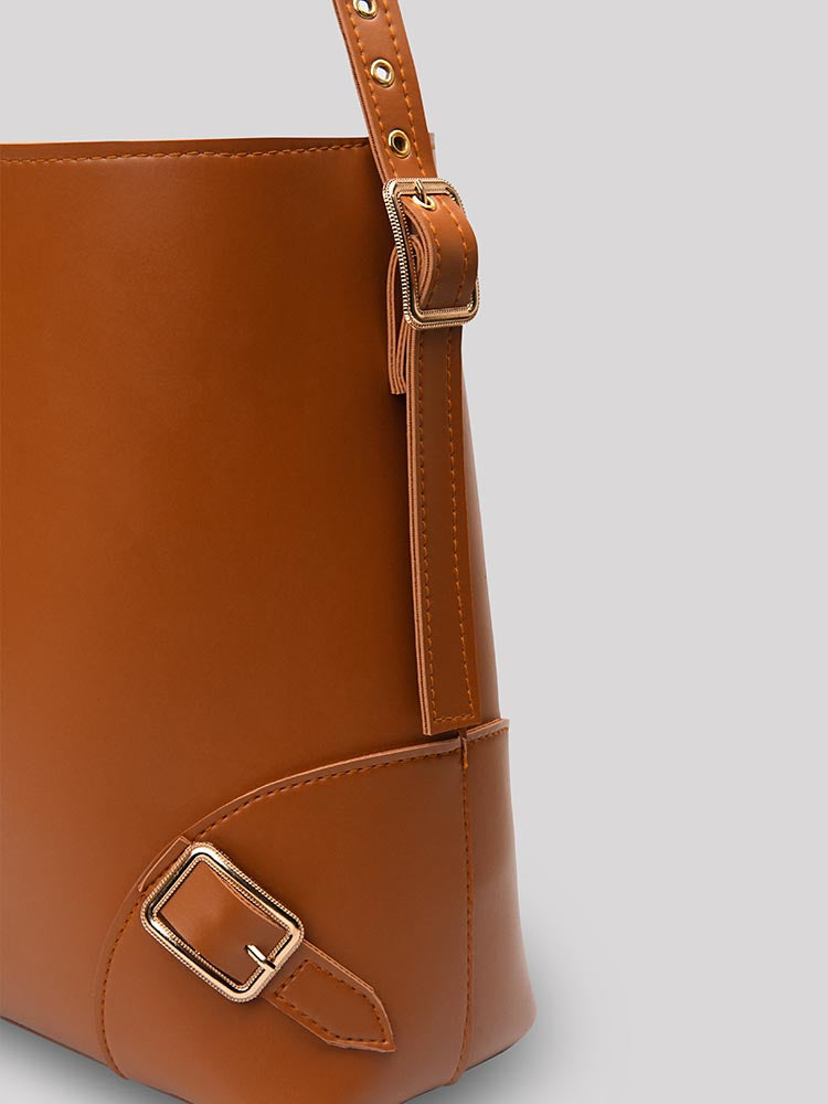 Refined Buckle Details: Accented with polished, light gold-tone buckles at the bottom corners for a touch of sophistication.