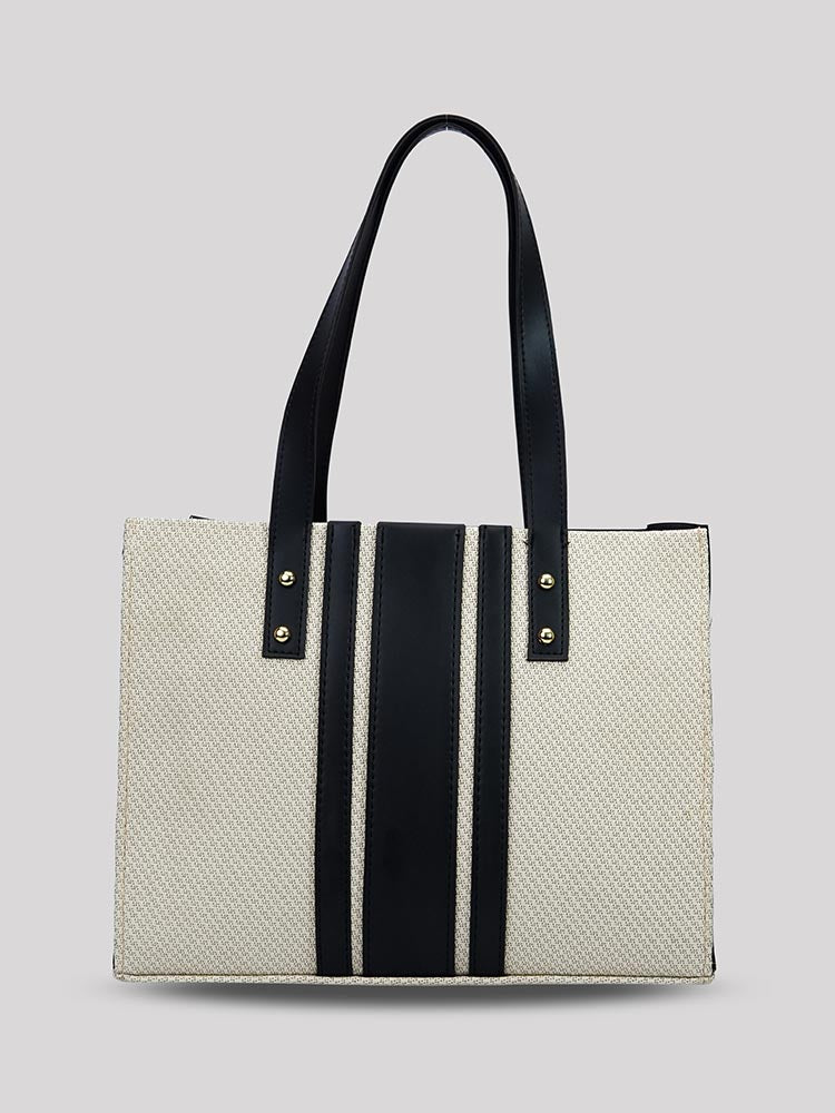 Meet your new favorite everyday CARLA tote. The bag perfectly captures a smart, sophisticated style with its beautiful blend of textures. The main body is crafted from a durable, natural-tone woven fabric, giving it a light and airy feel.