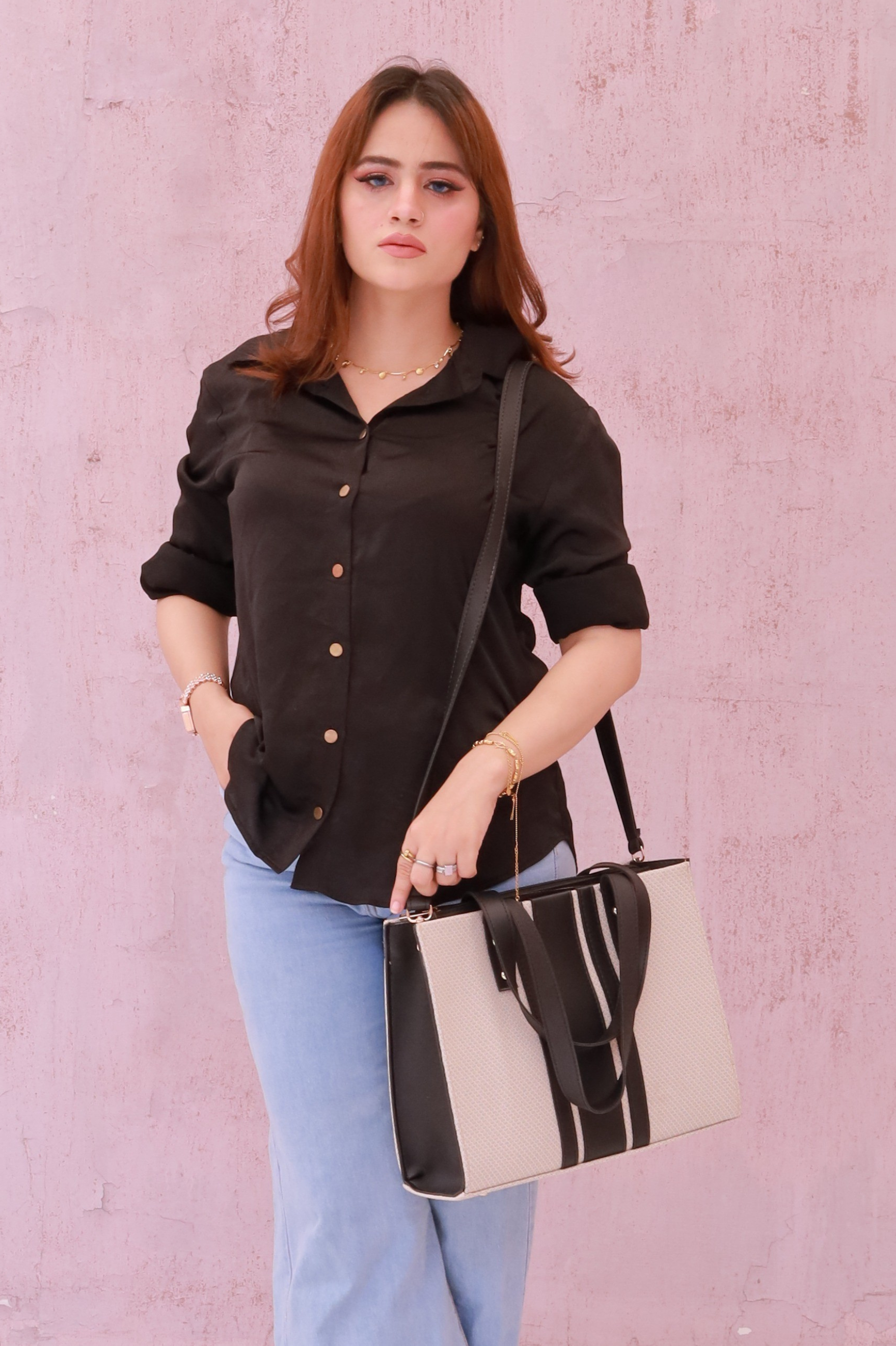 Structured Tote Shape: A classic rectangular silhouette that holds its form, offering a roomy interior for your laptop, notebook, and daily essentials.